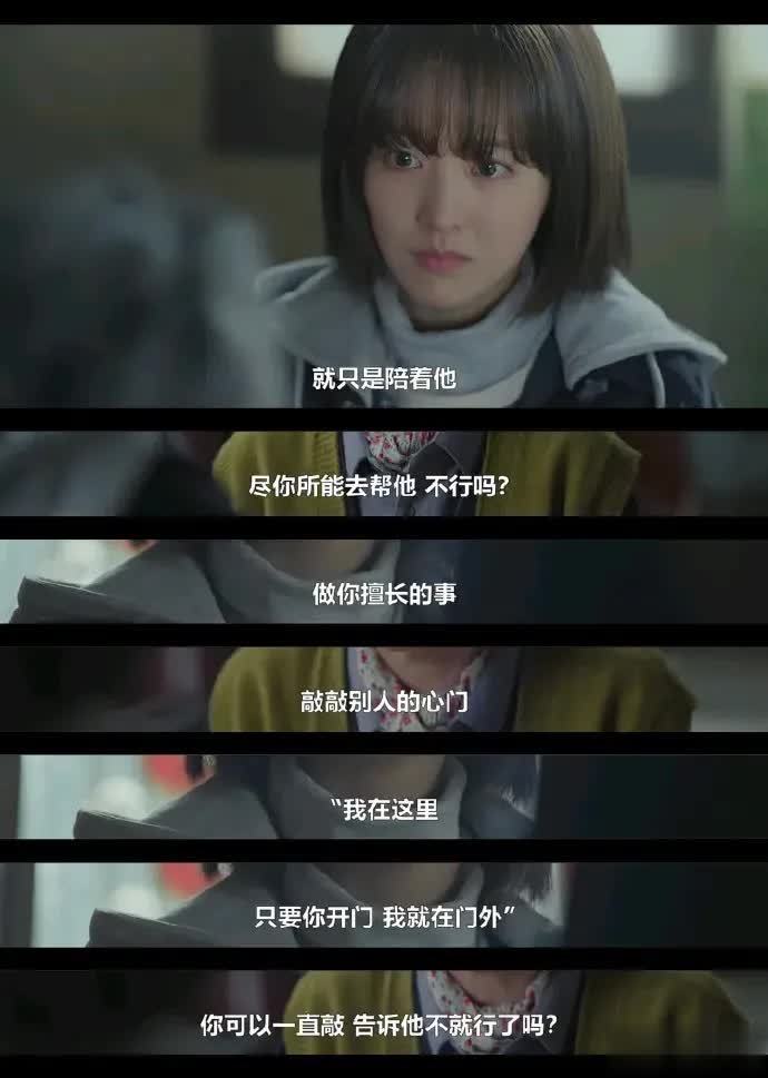 “我陷入低谷的时候,即便浑身带刺,你依然会一次次靠近我。我也想成为那样的人,给你支持,可看到你受伤后痛苦的样子,我却没了勇气。和你不同,我没有治愈他人的力量,我怕自己会让你伤得更深。”