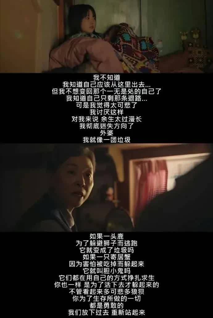 这部剧感觉每个人都有自己的故事,幸好身边此刻都是很好的人,相互得到了救赎一般,外婆走的那里,也在告诉我们死亡也是一门课程。